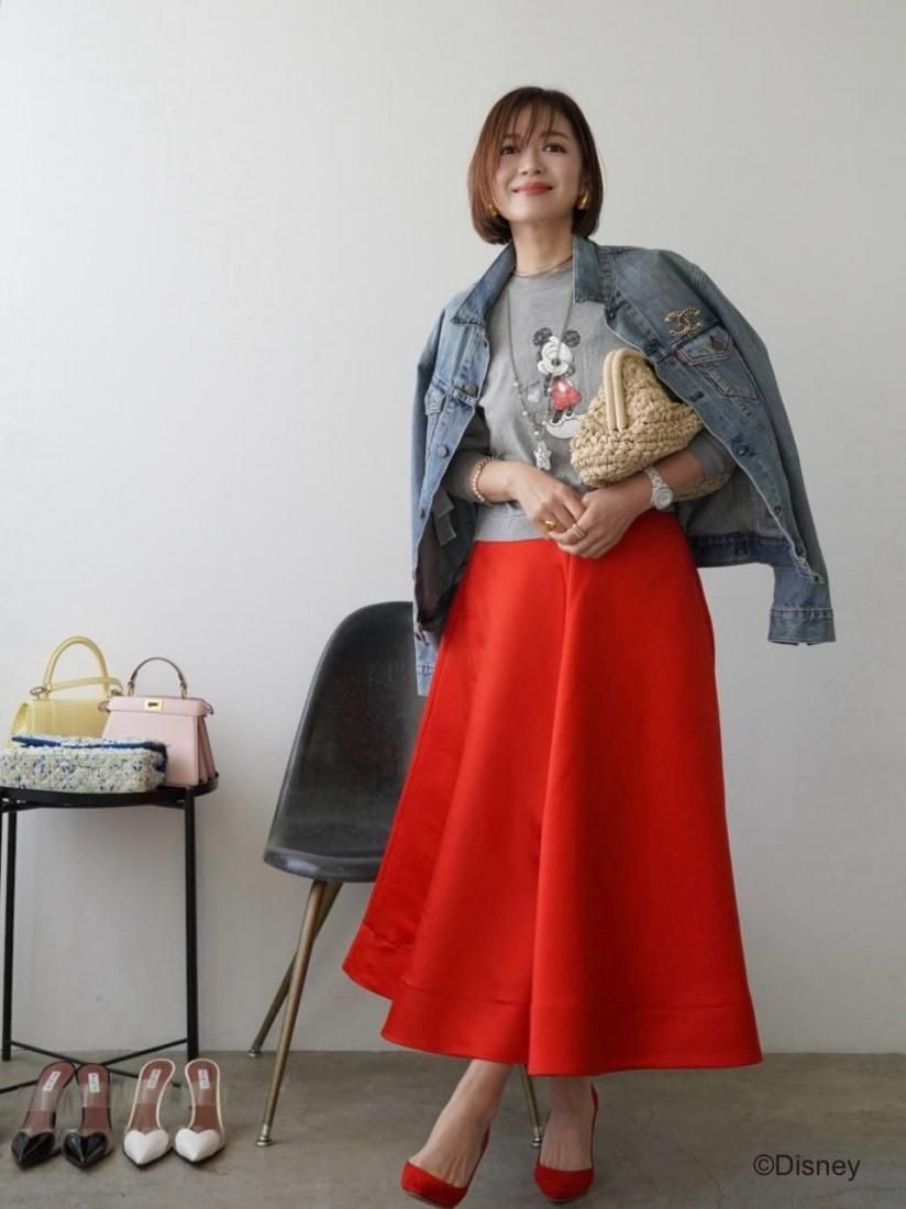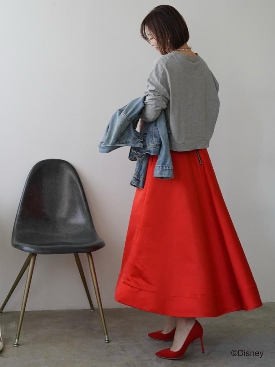 いつものコーデに、サテンフレアスカートを取り入れるだけで、