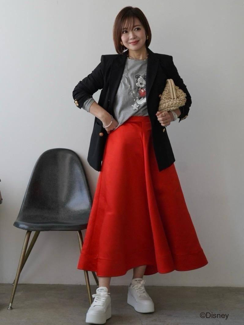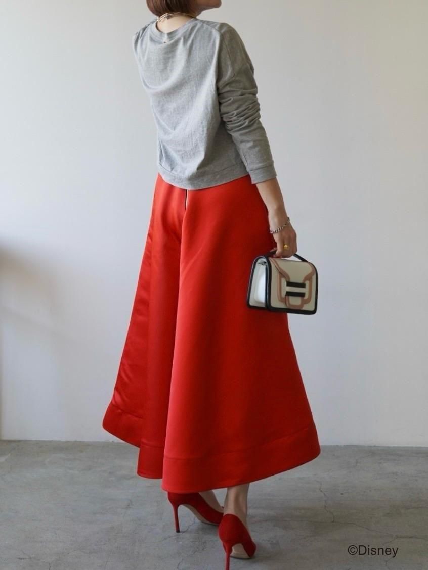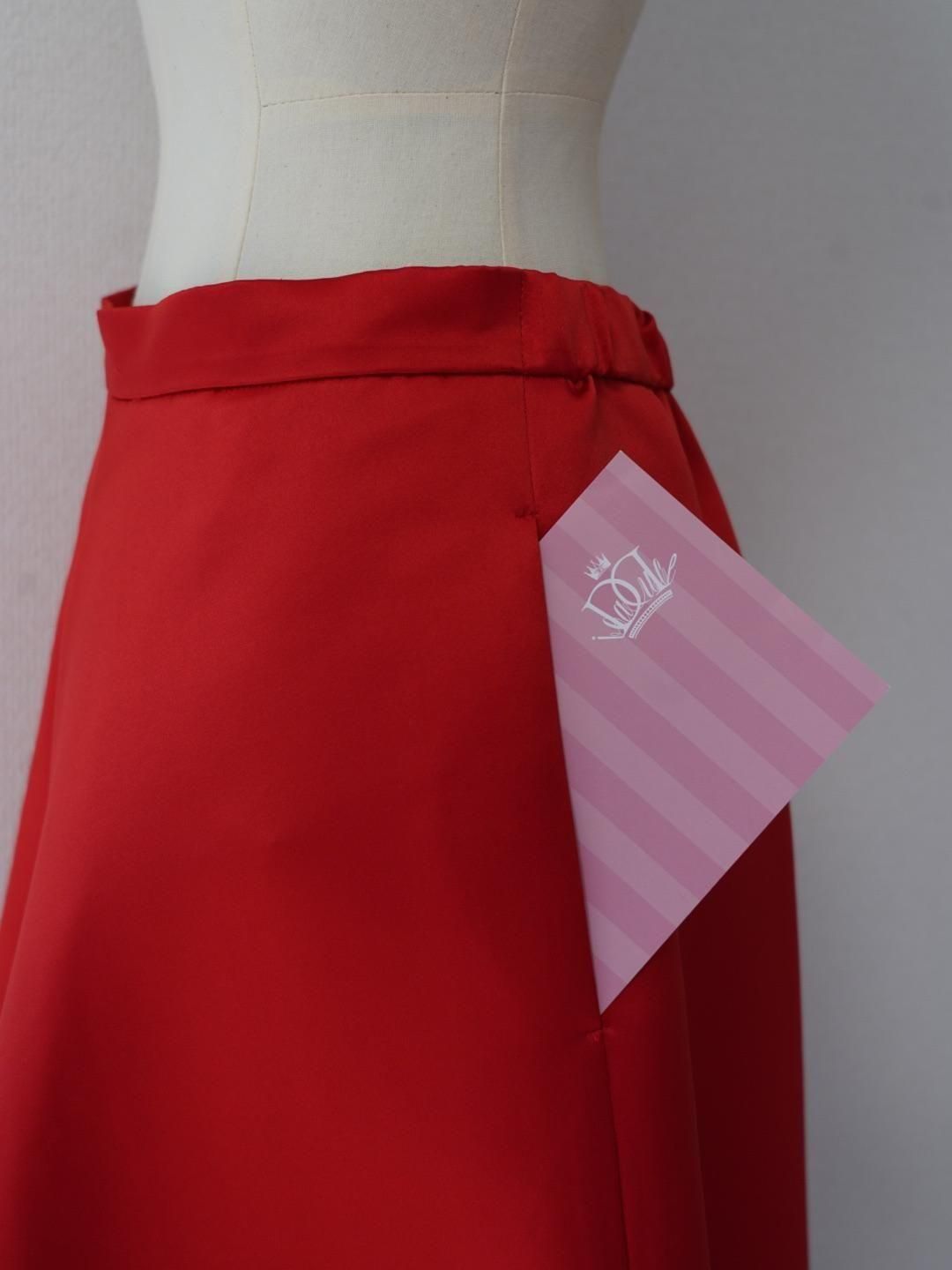 【サテンフレアスカート / レッド 】