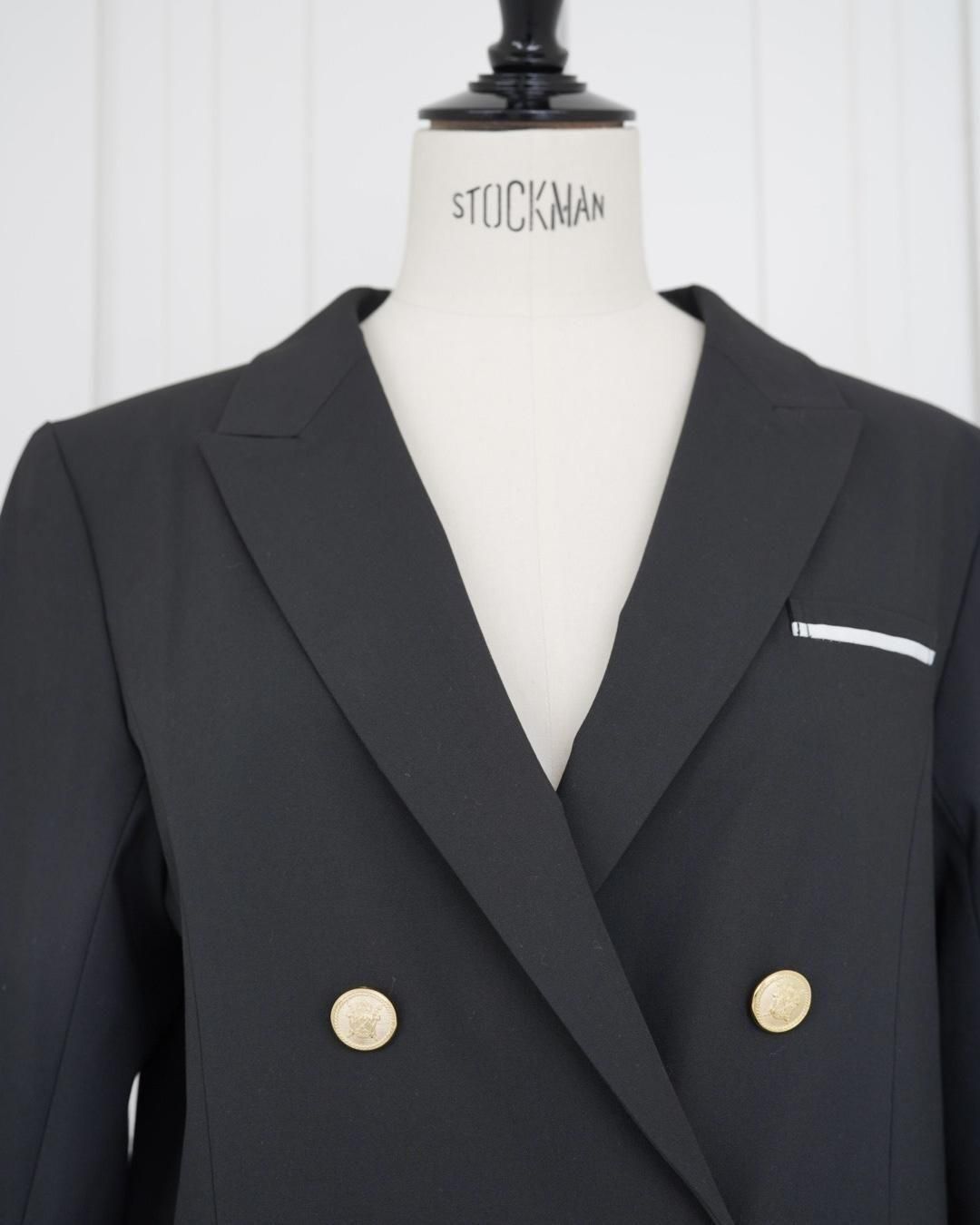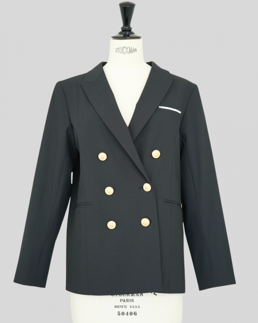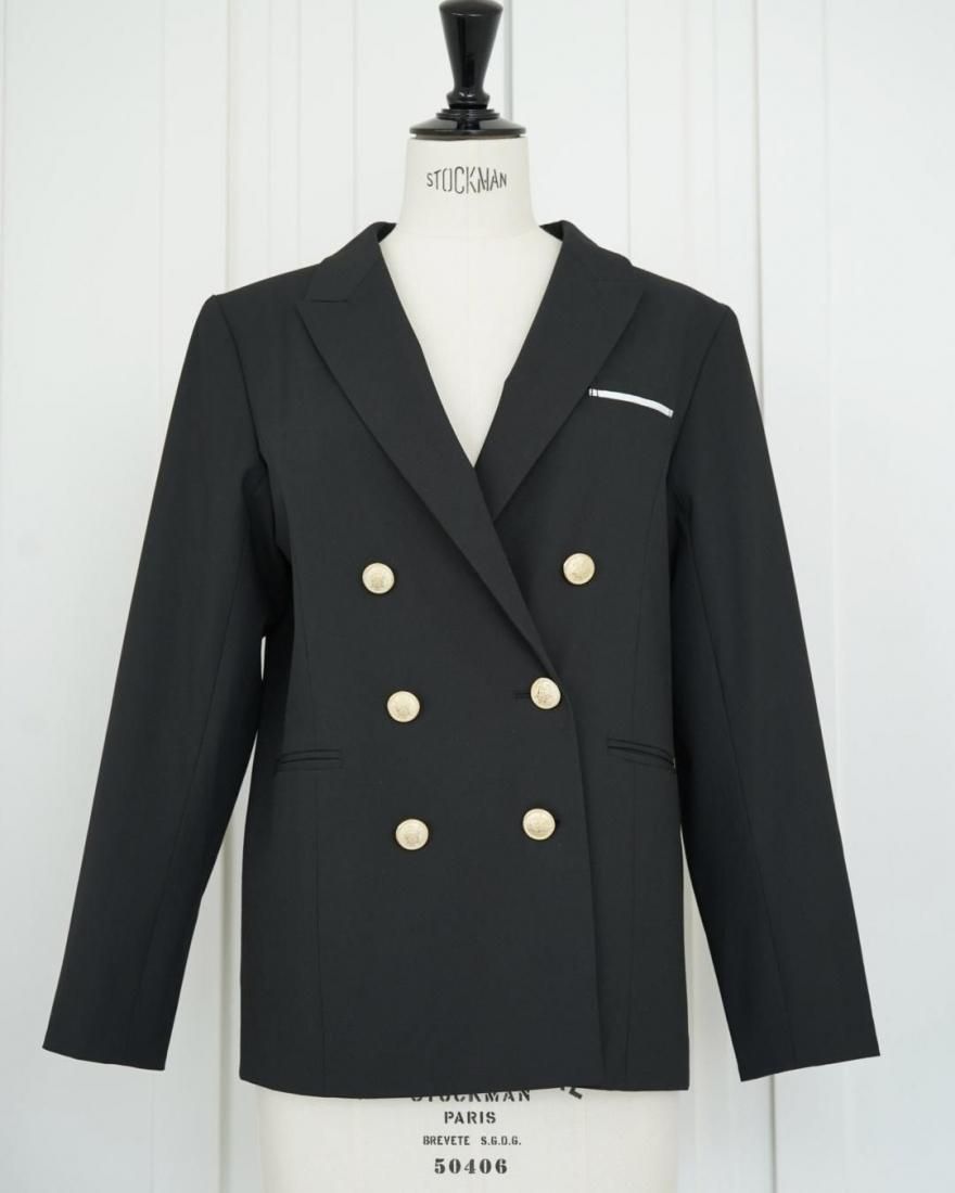 胸元ポケットのパイピングと上品な金ボタンがアクセントになり、スタイルUPが叶います。