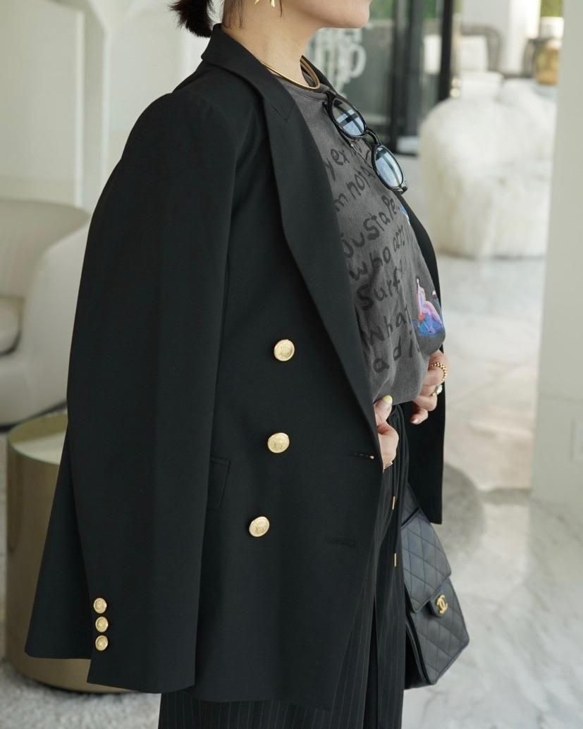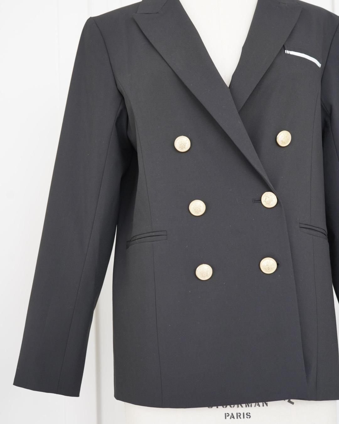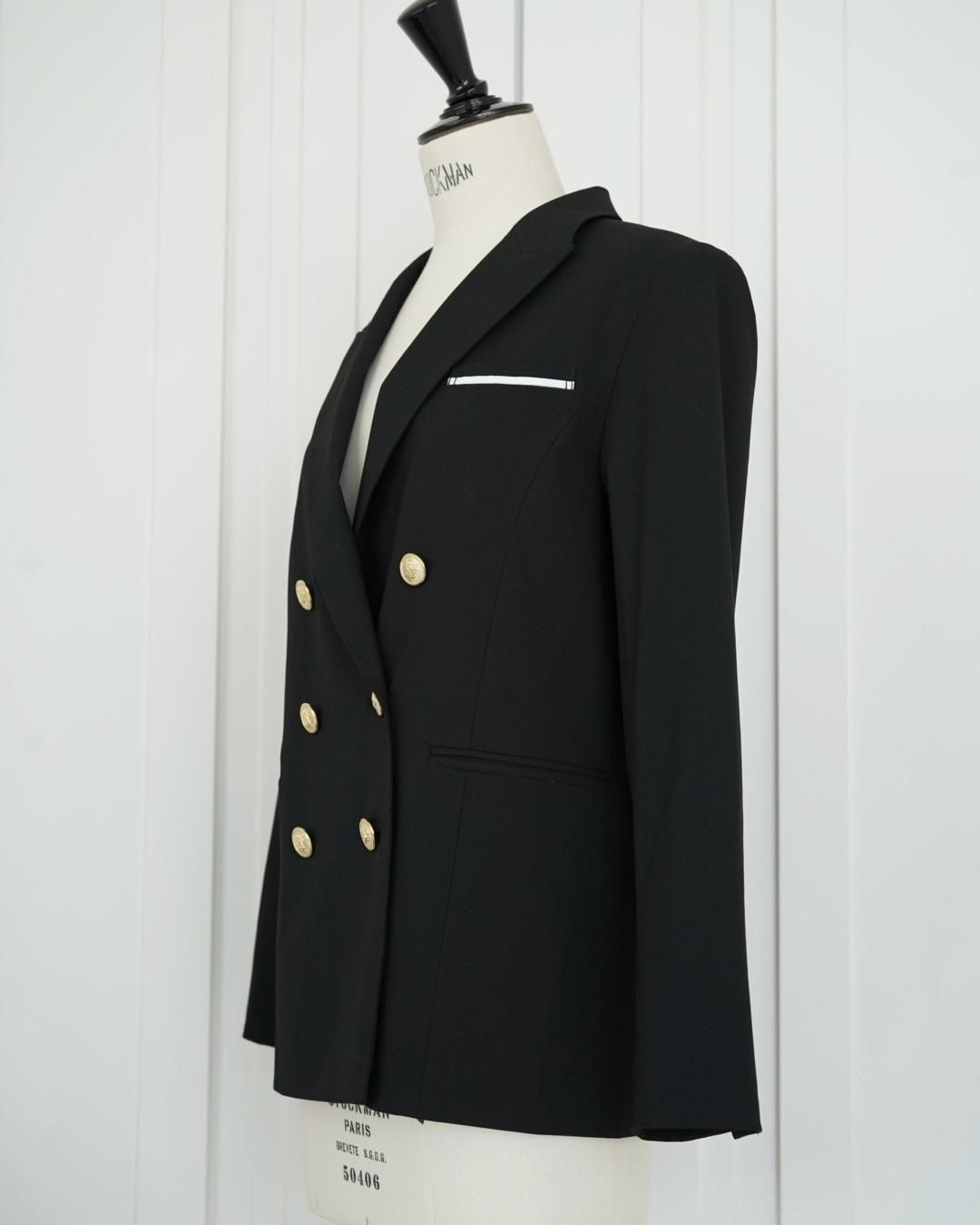 胸元ポケットのパイピングと上品な金ボタンがアクセントになり、スタイルUPが叶います。