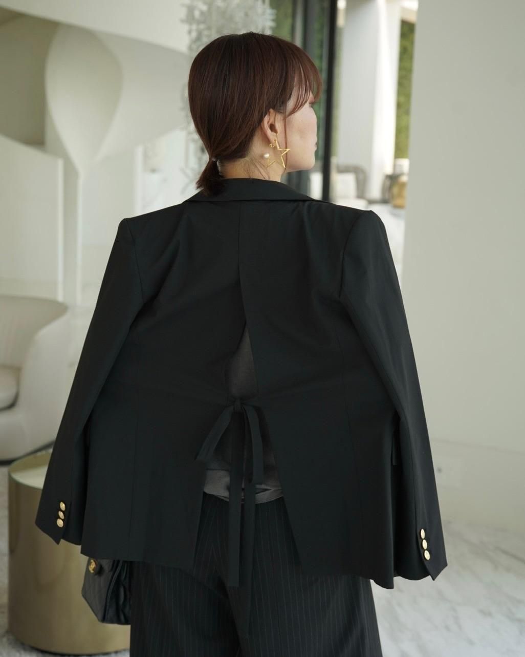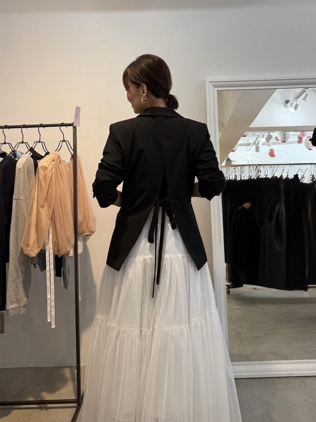 後ろスリット&リボンデザインが、フェミニンさと抜け感をプラス。