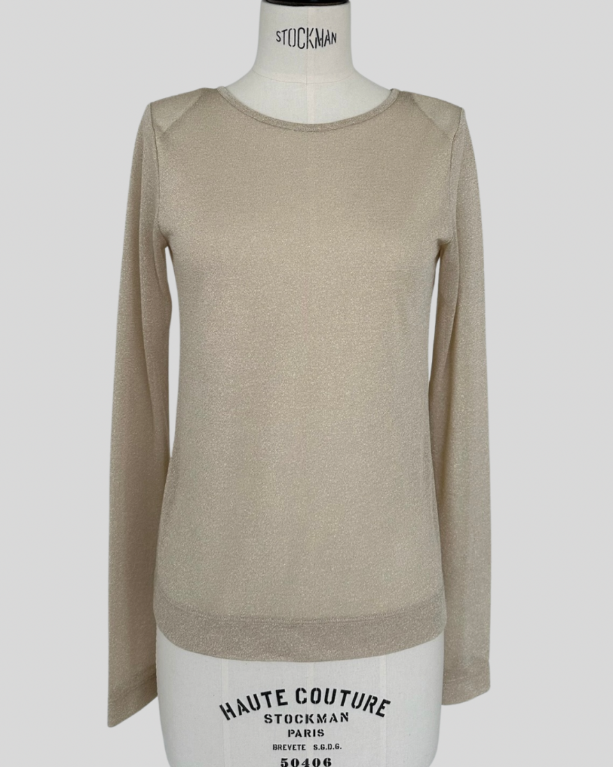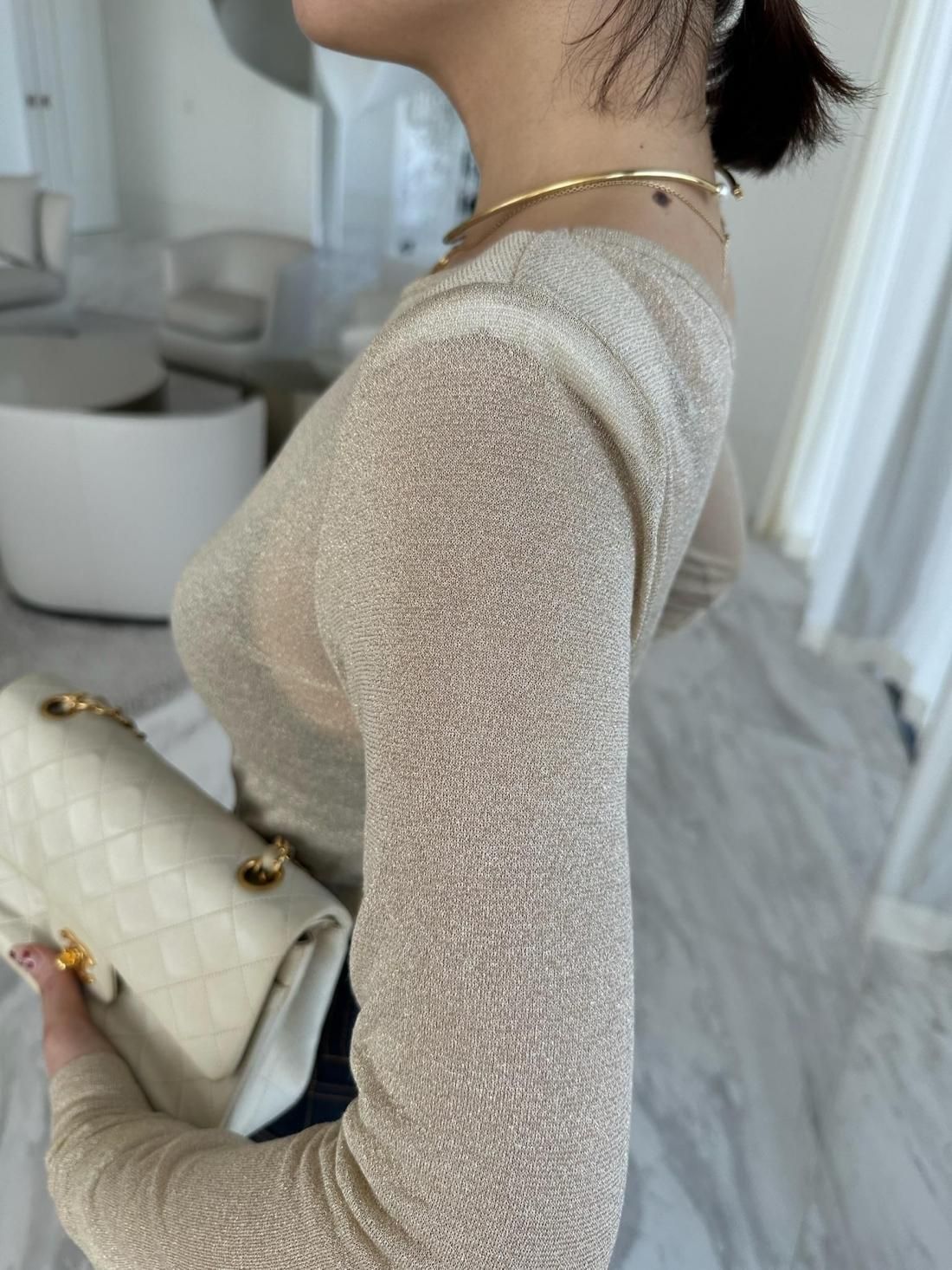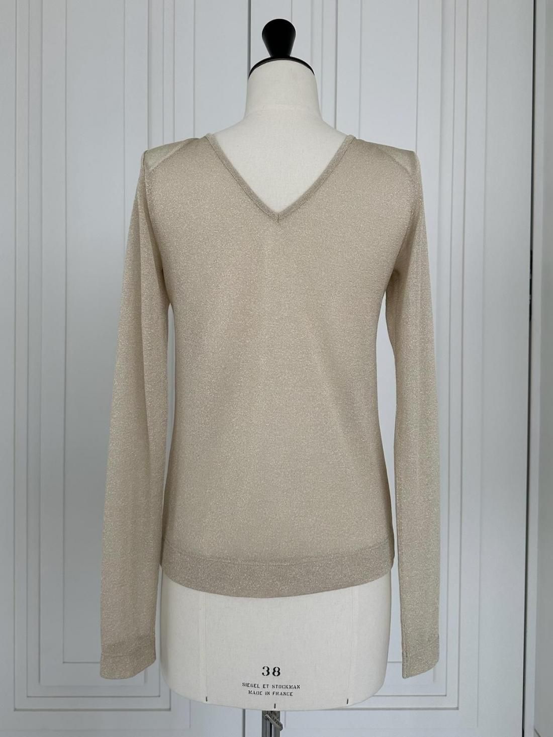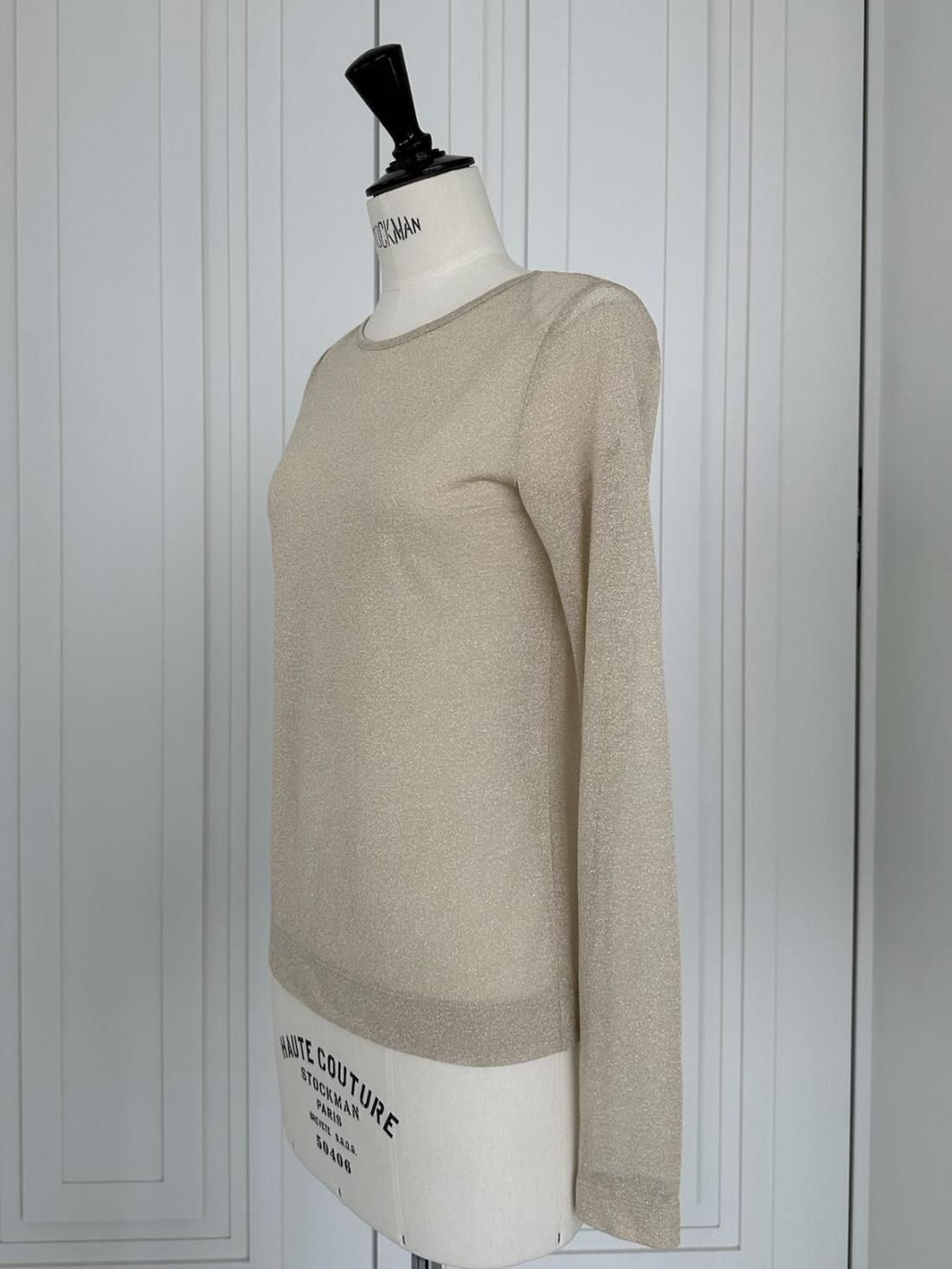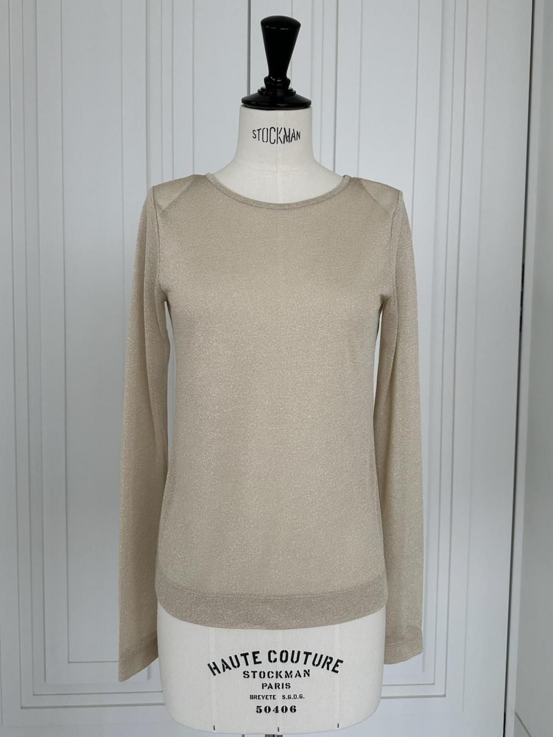 透け感のある薄手生地には、極細のモノフィラメント糸を使用したキラキラショルダーロンT。