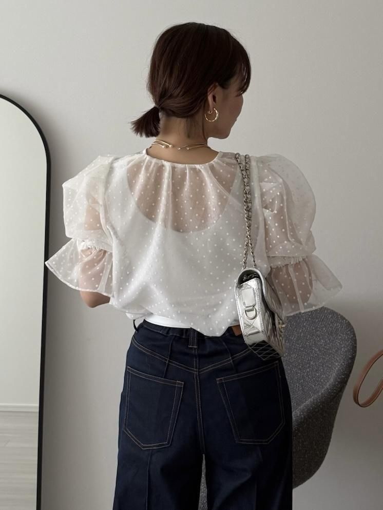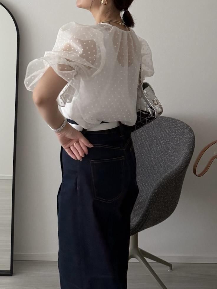 薄手の生地でごわつかないため、ジャケットやオールインワンのインナーにもJennyデニムとデイリーコーデにも。