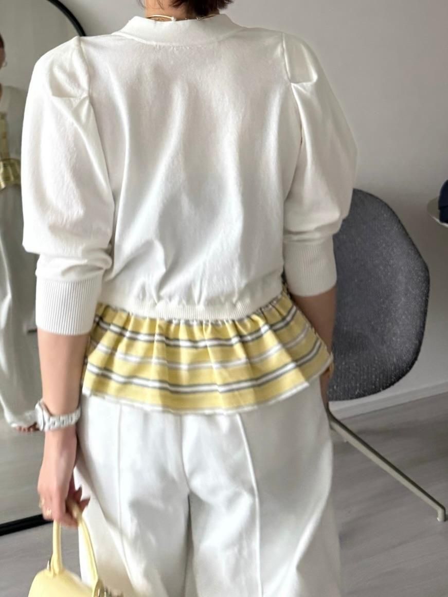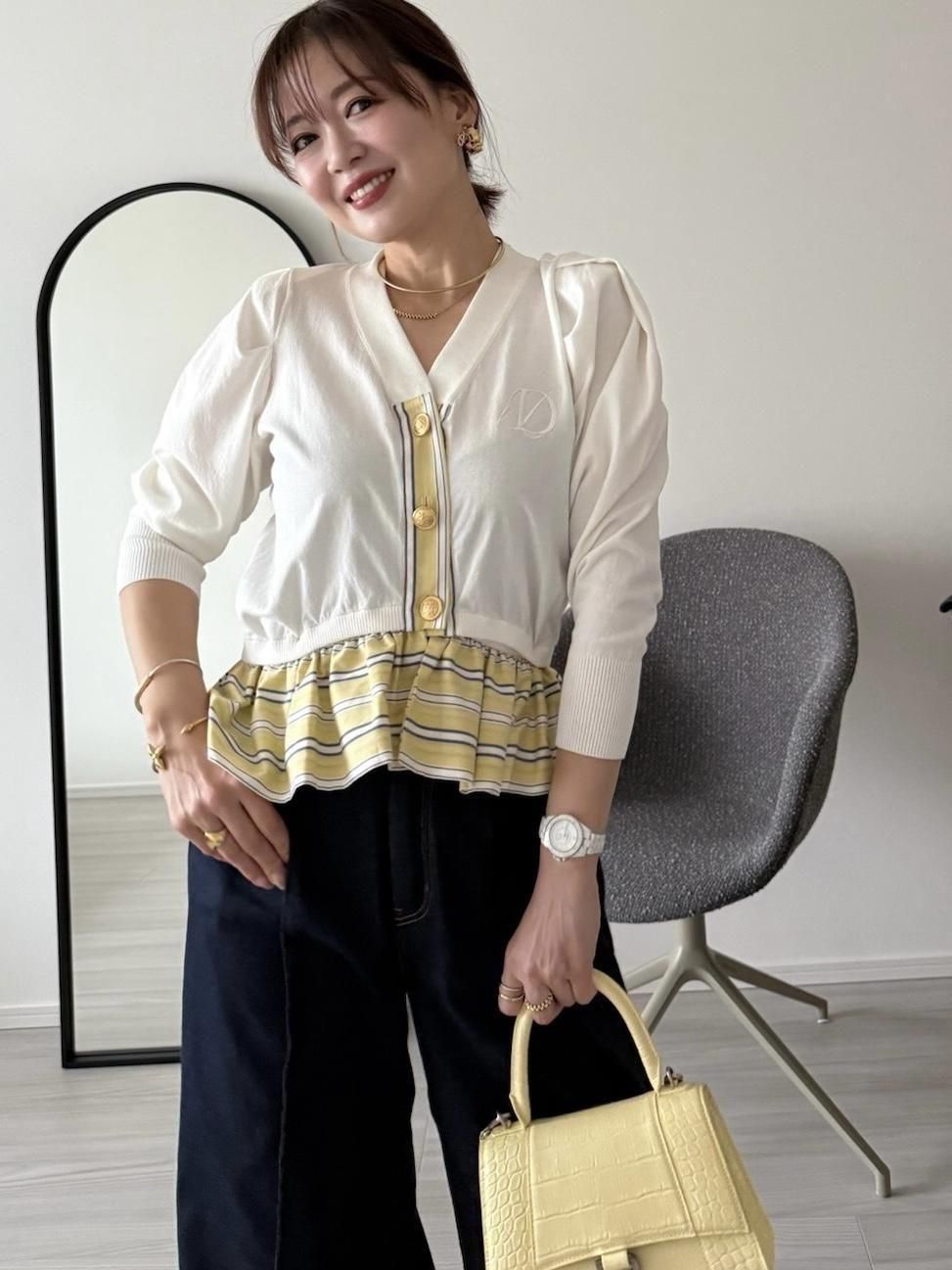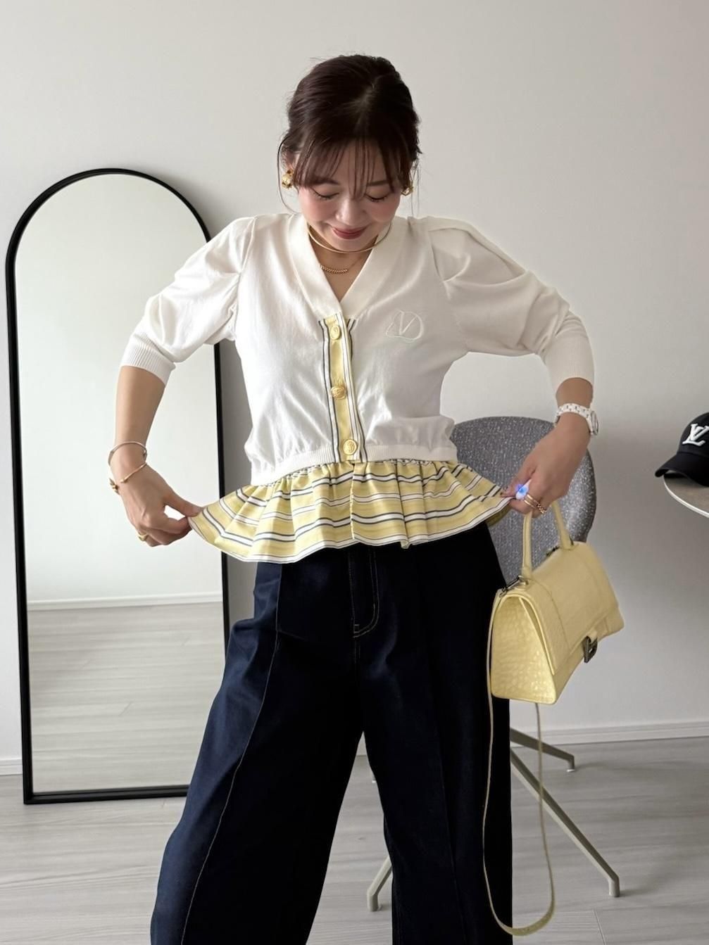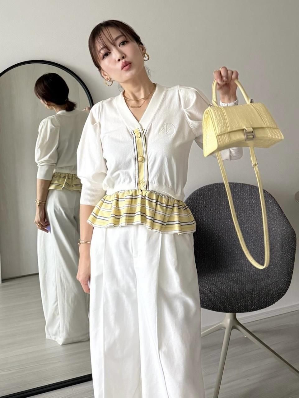 ふんわり広がるペプラムラインはウエスト位置を高く