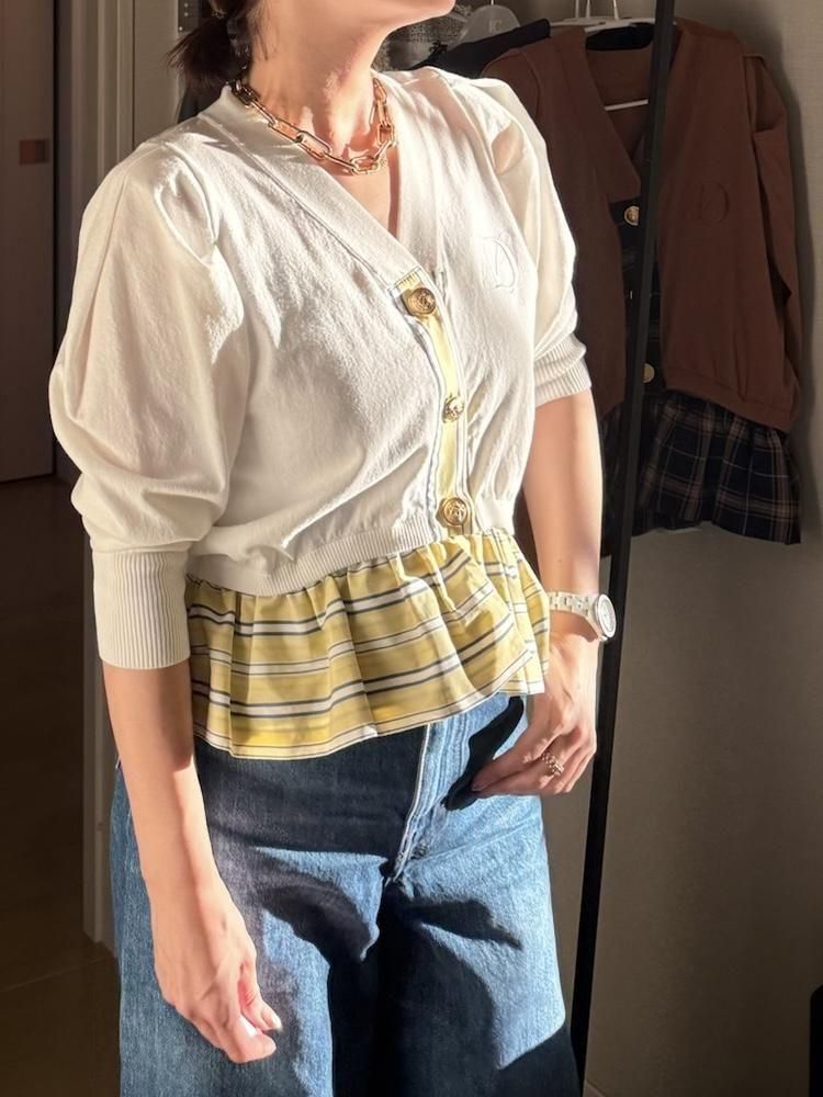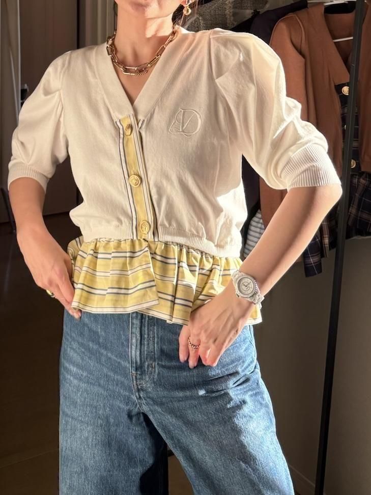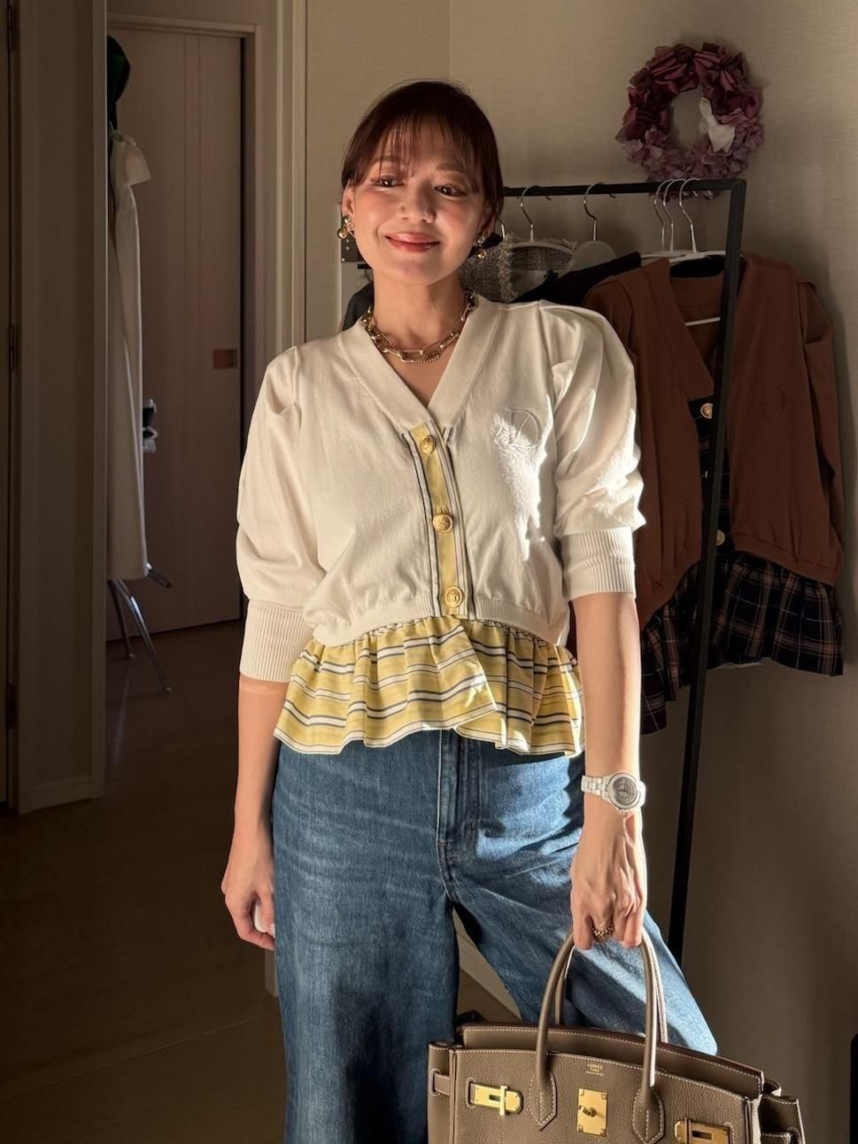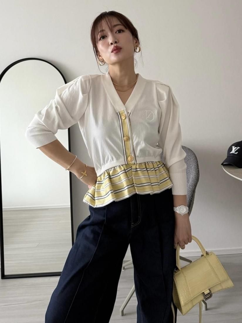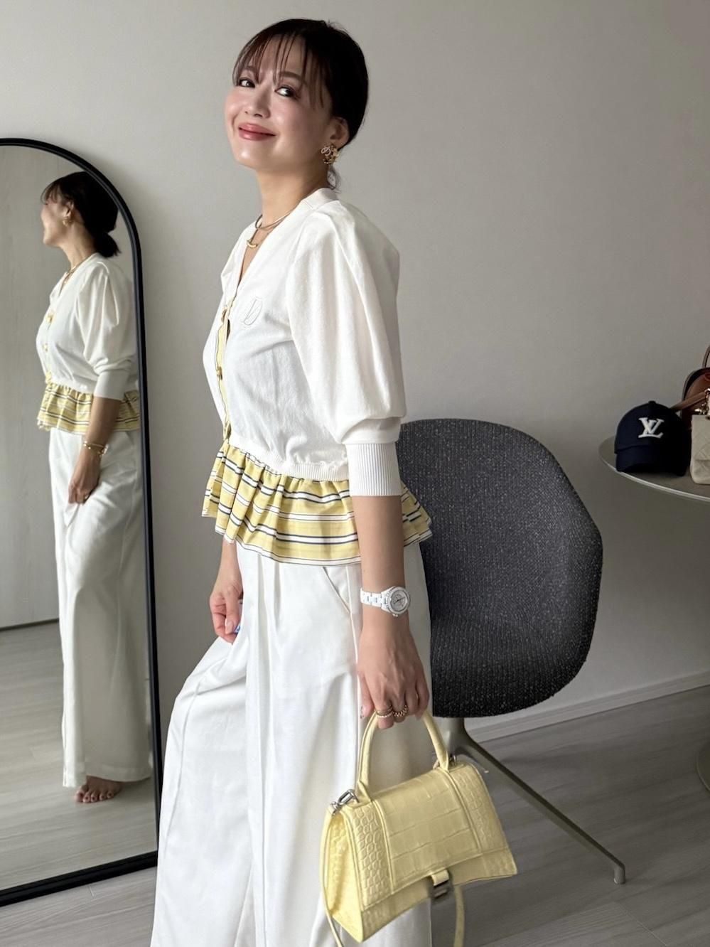 ふんわり広がるペプラムラインはウエスト位置を高く