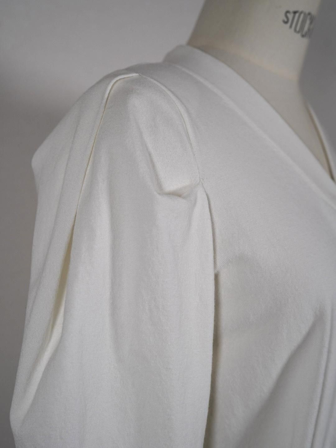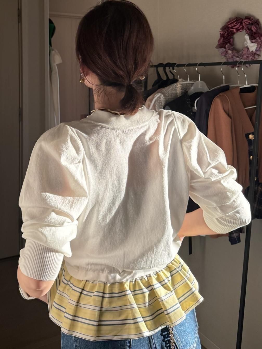肩に忍ばせたパッドがつくる立体的なパフショルダーと