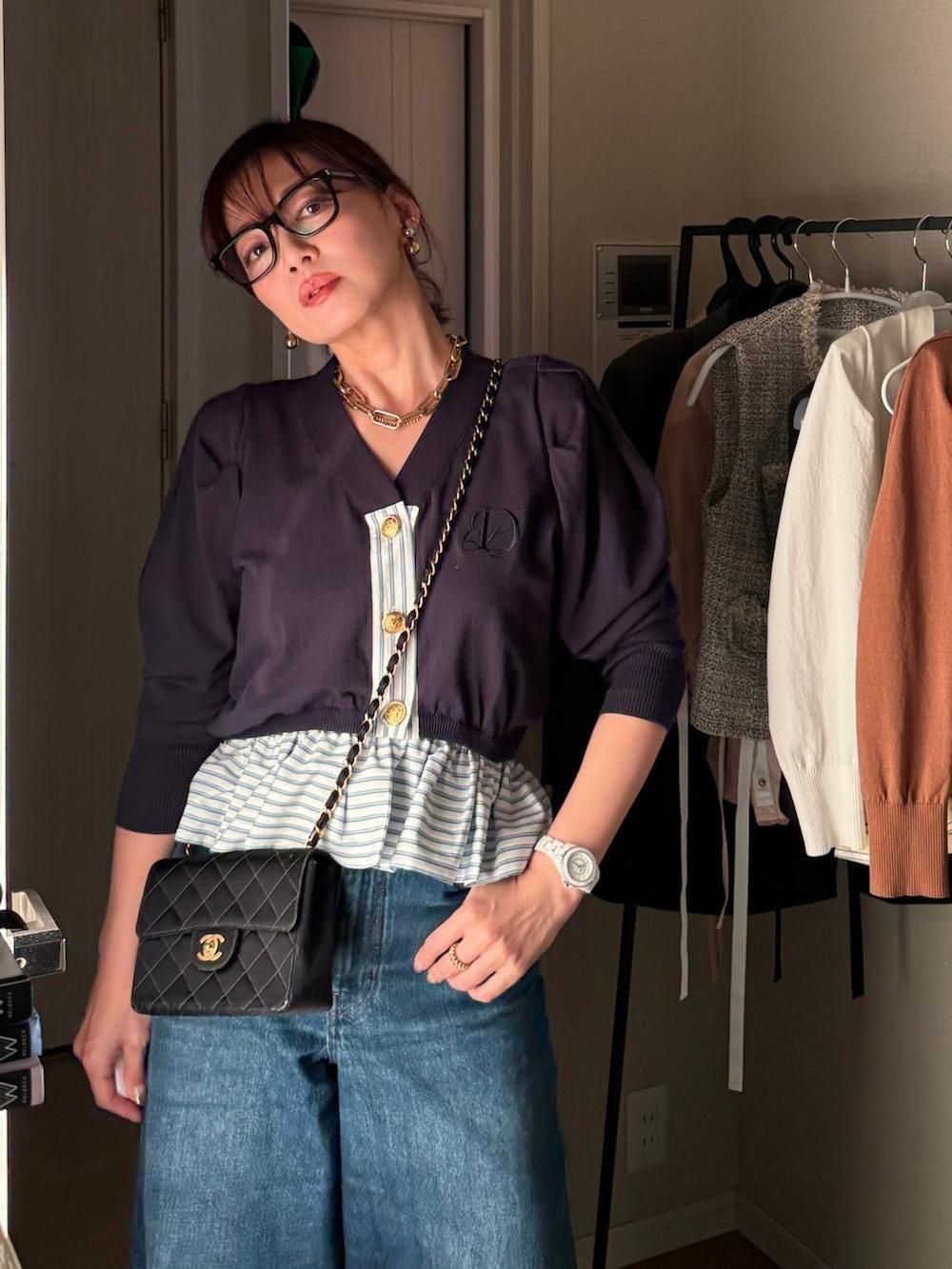 【ペプラムニットカーデ / ネイビー】