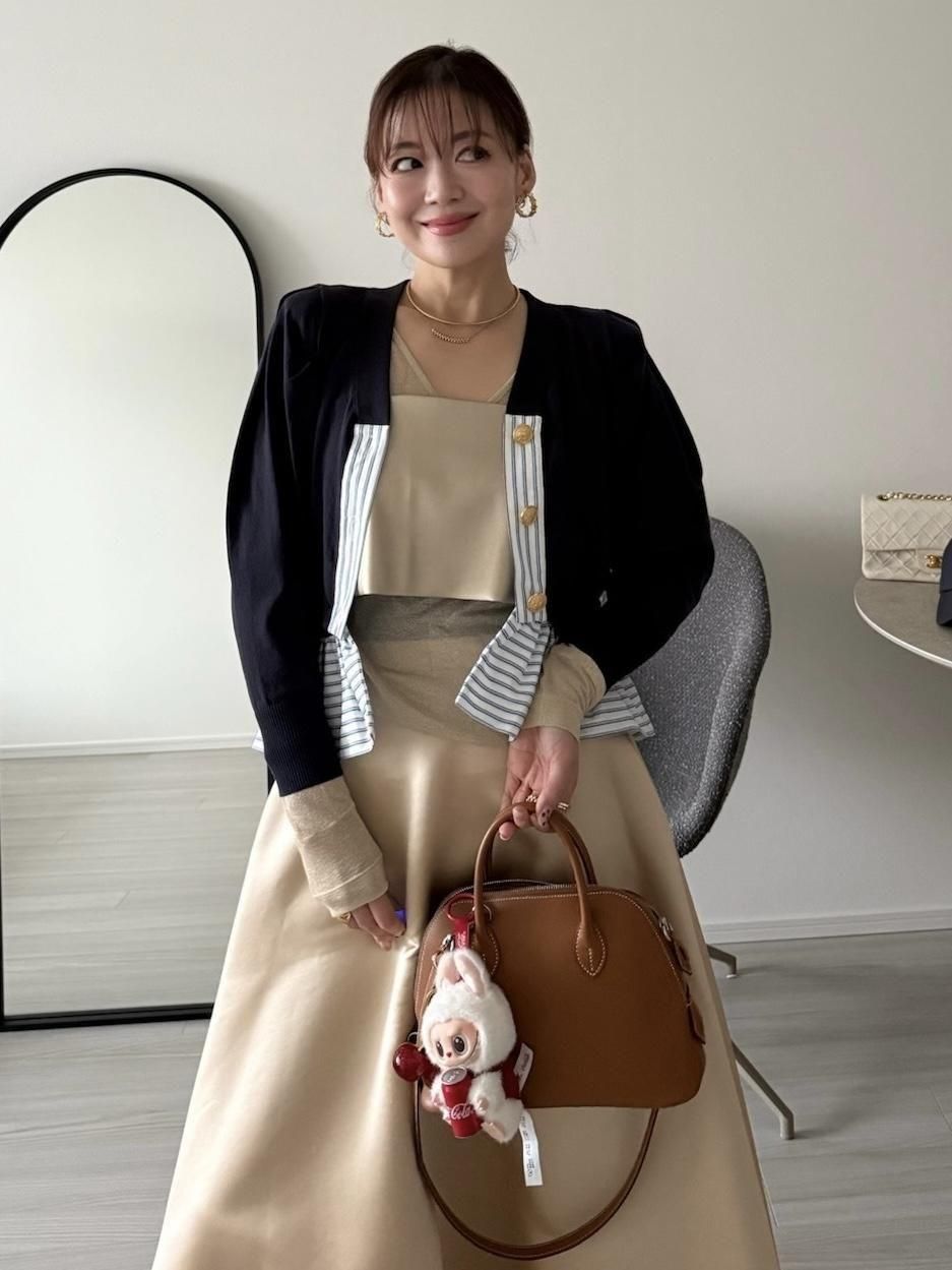 異素材コントラストが映えるペプラムカーディガン。