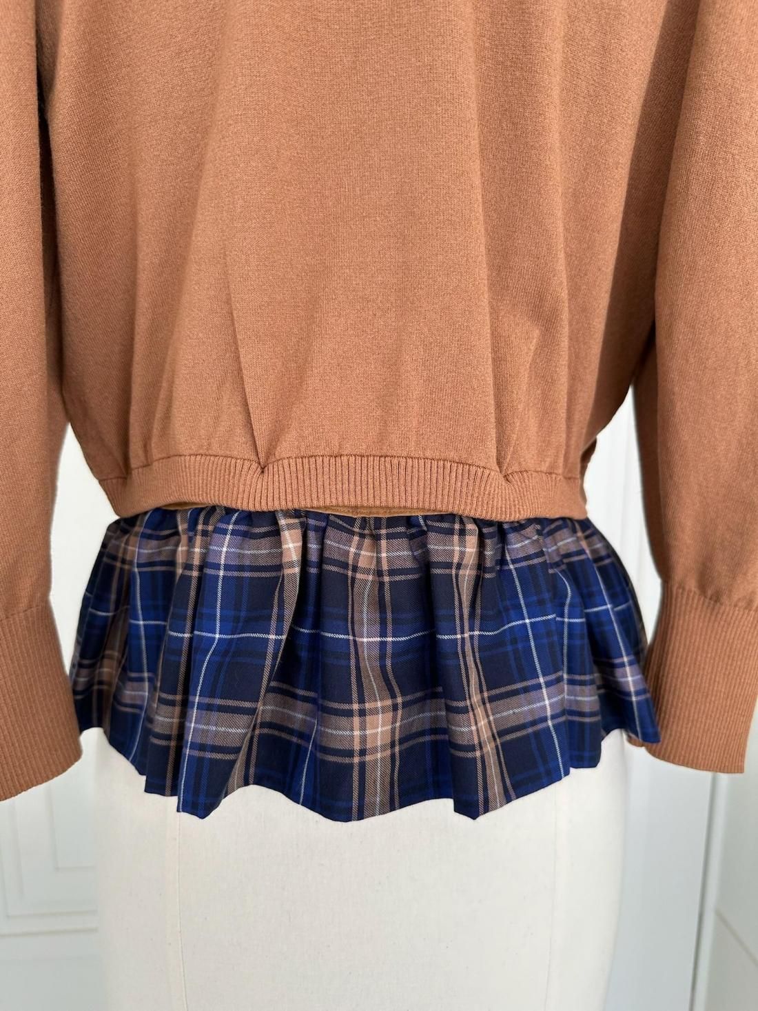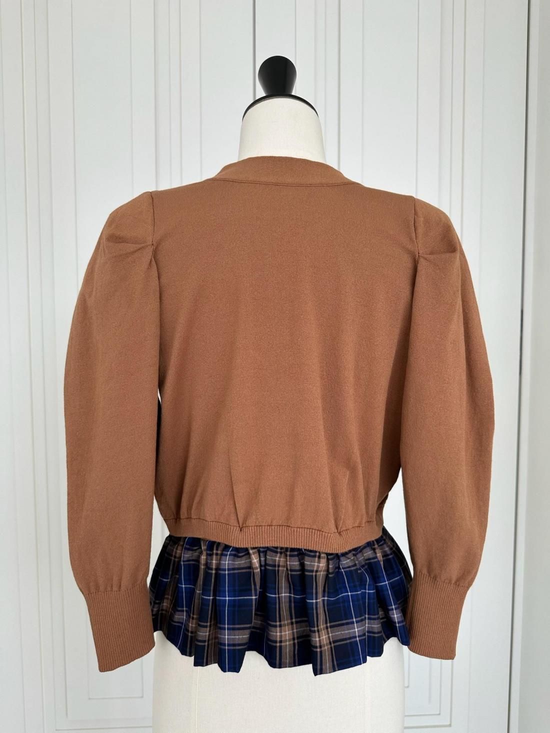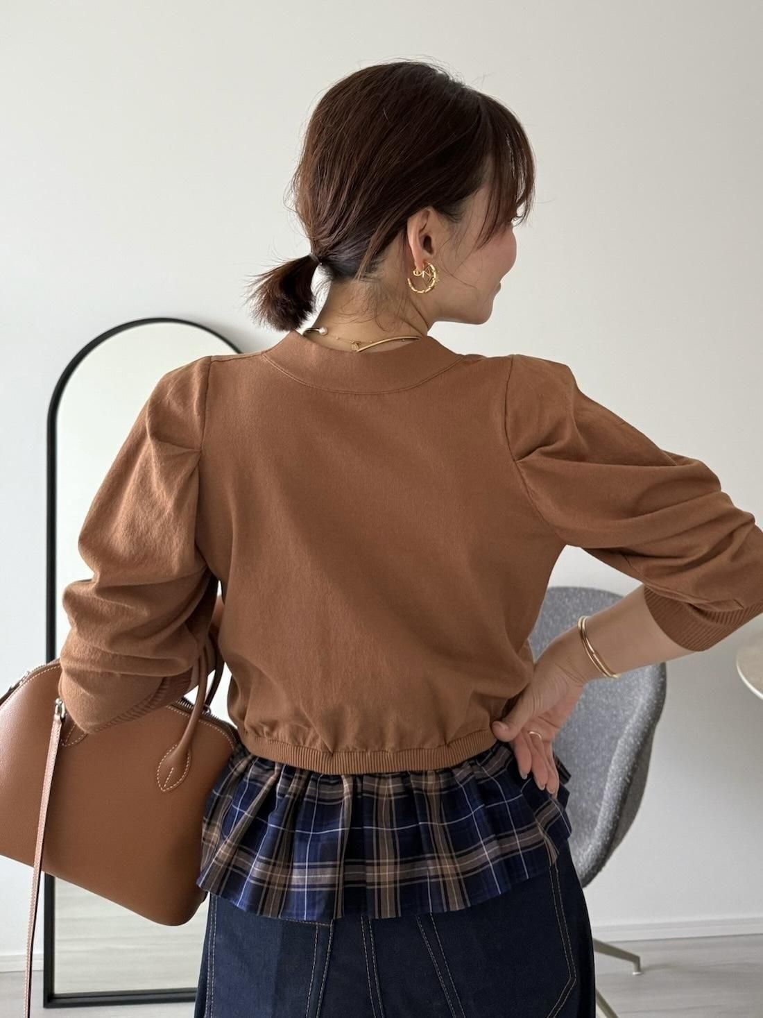 ふんわり広がるペプラムラインはウエスト位置を高く