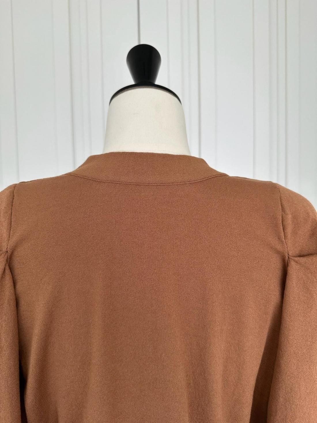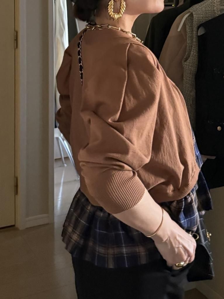 肩に忍ばせたパッドがつくる立体的なパフショルダーと