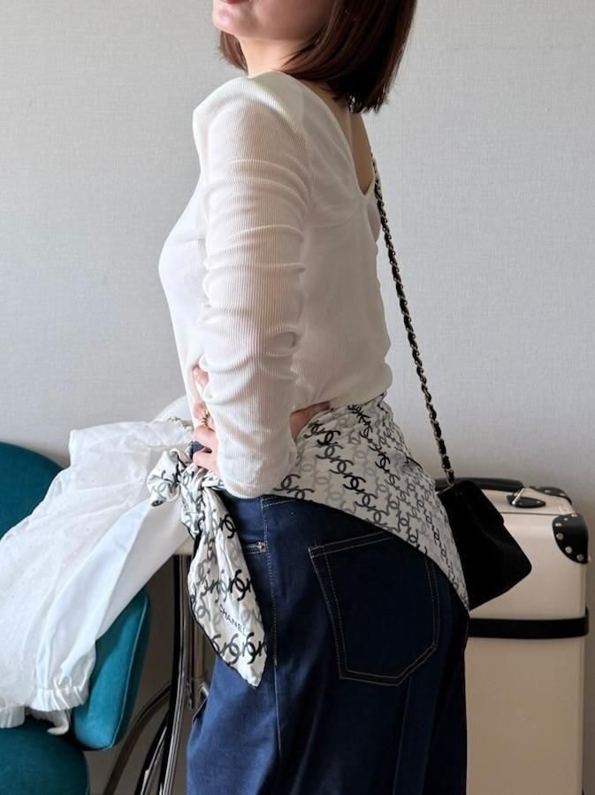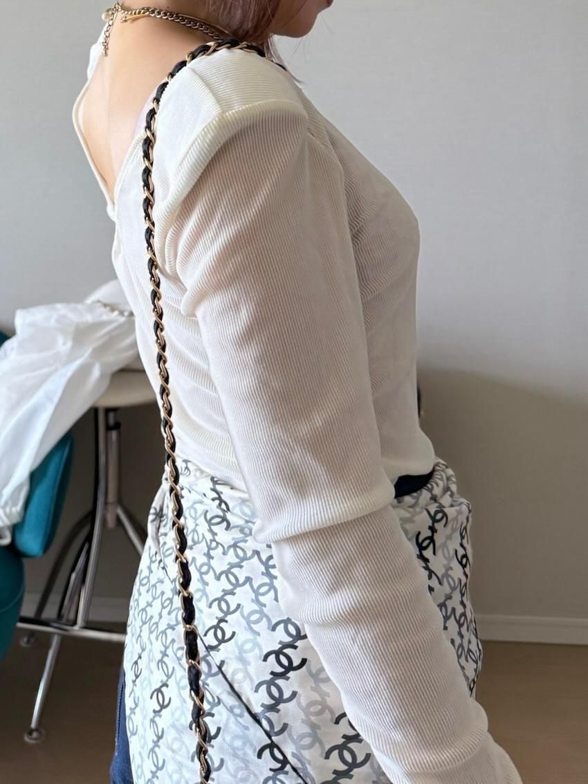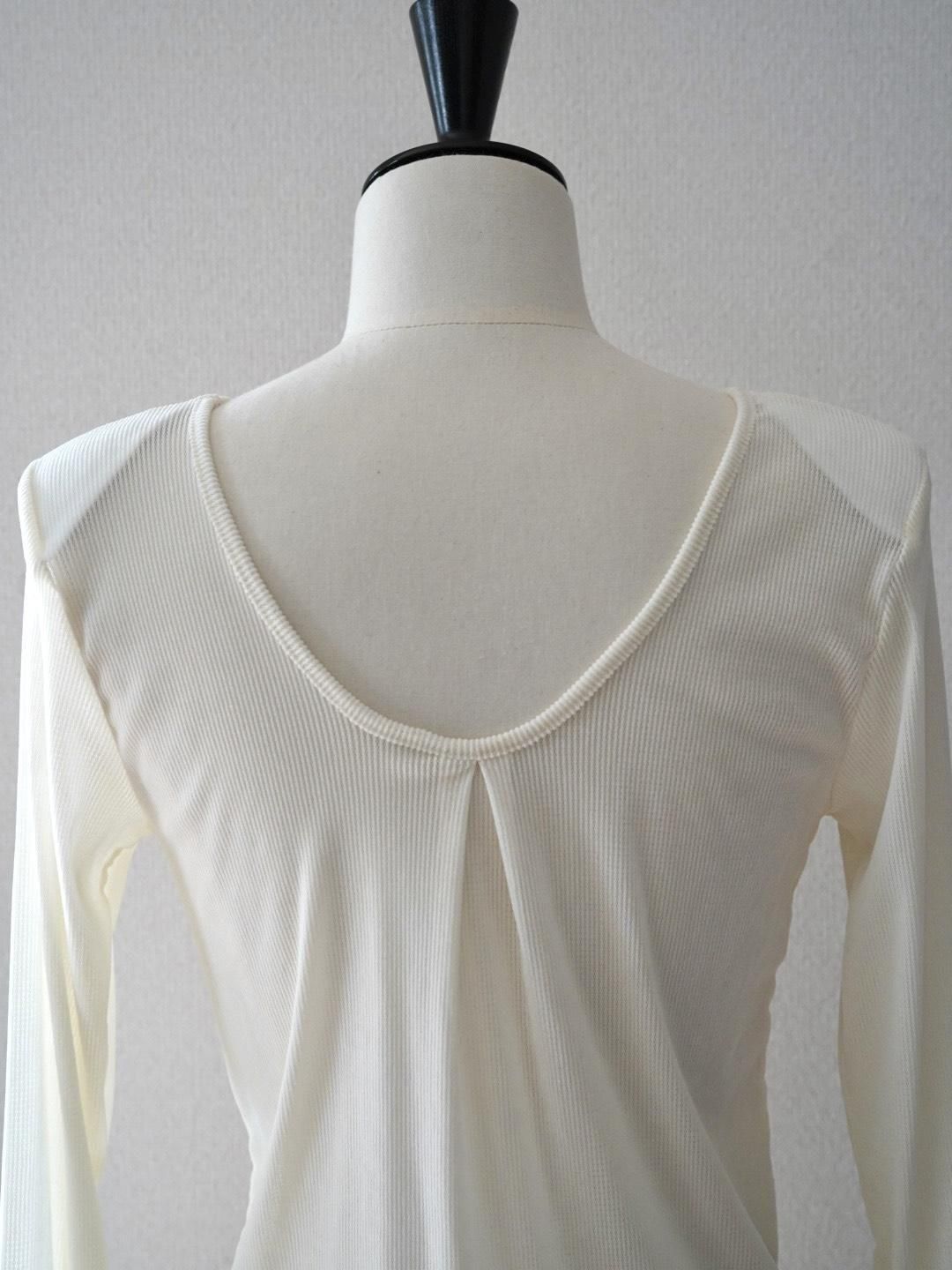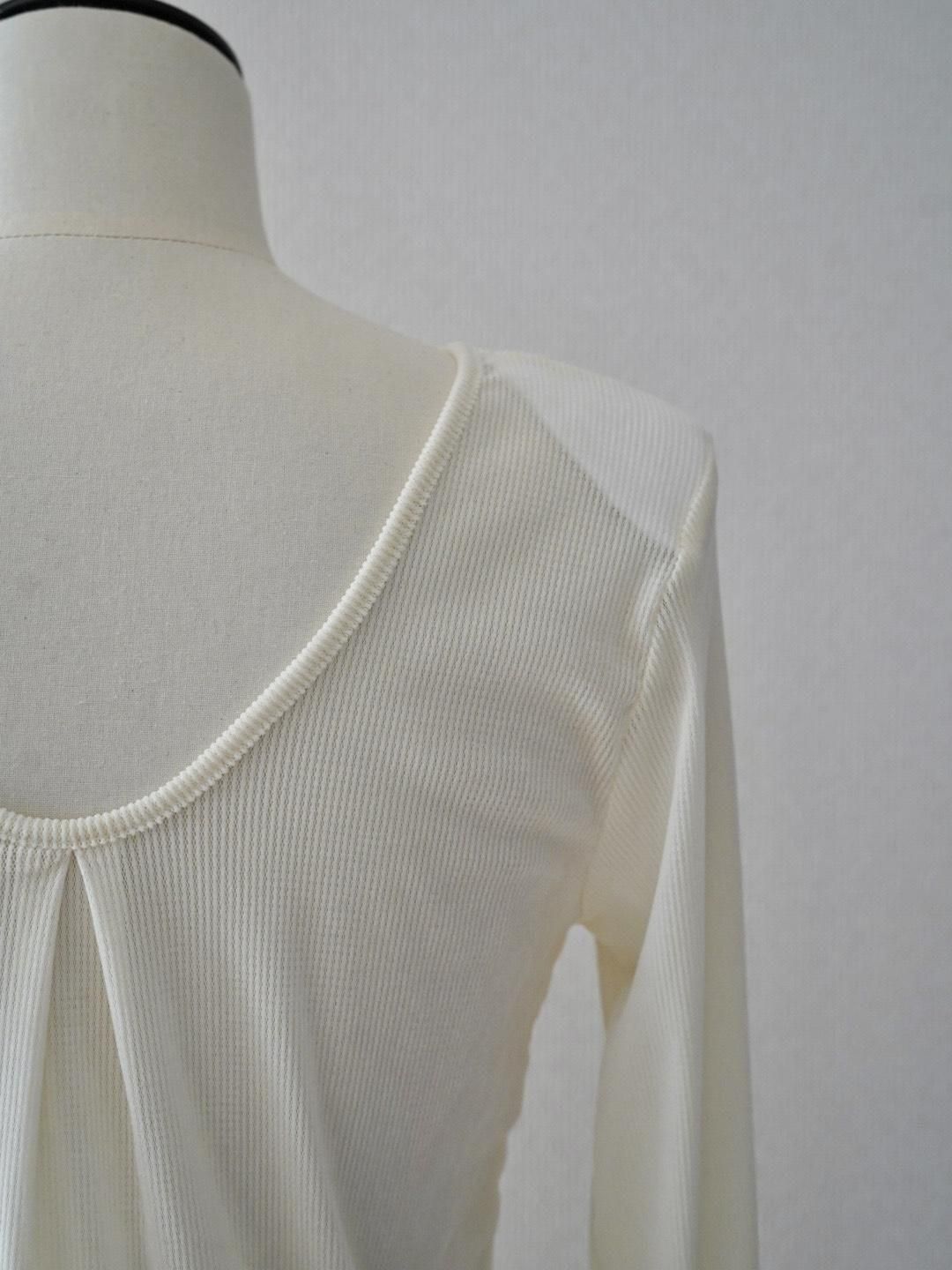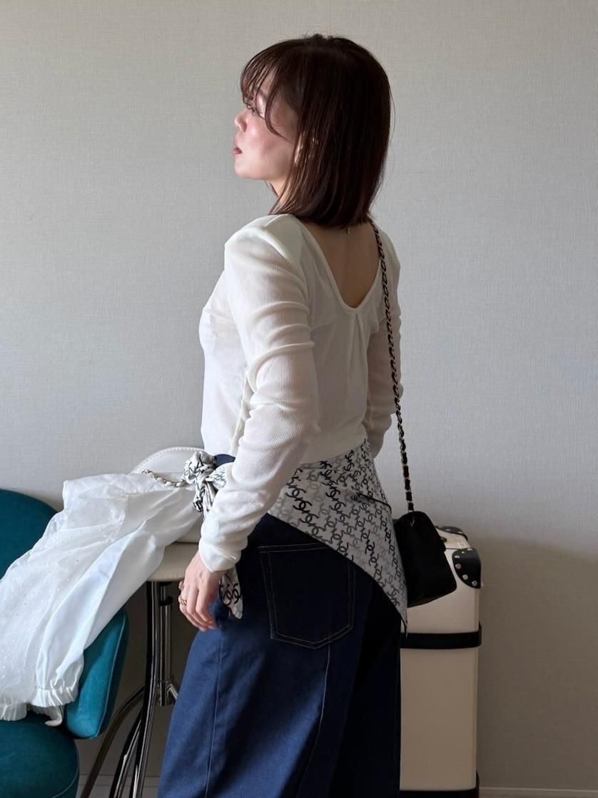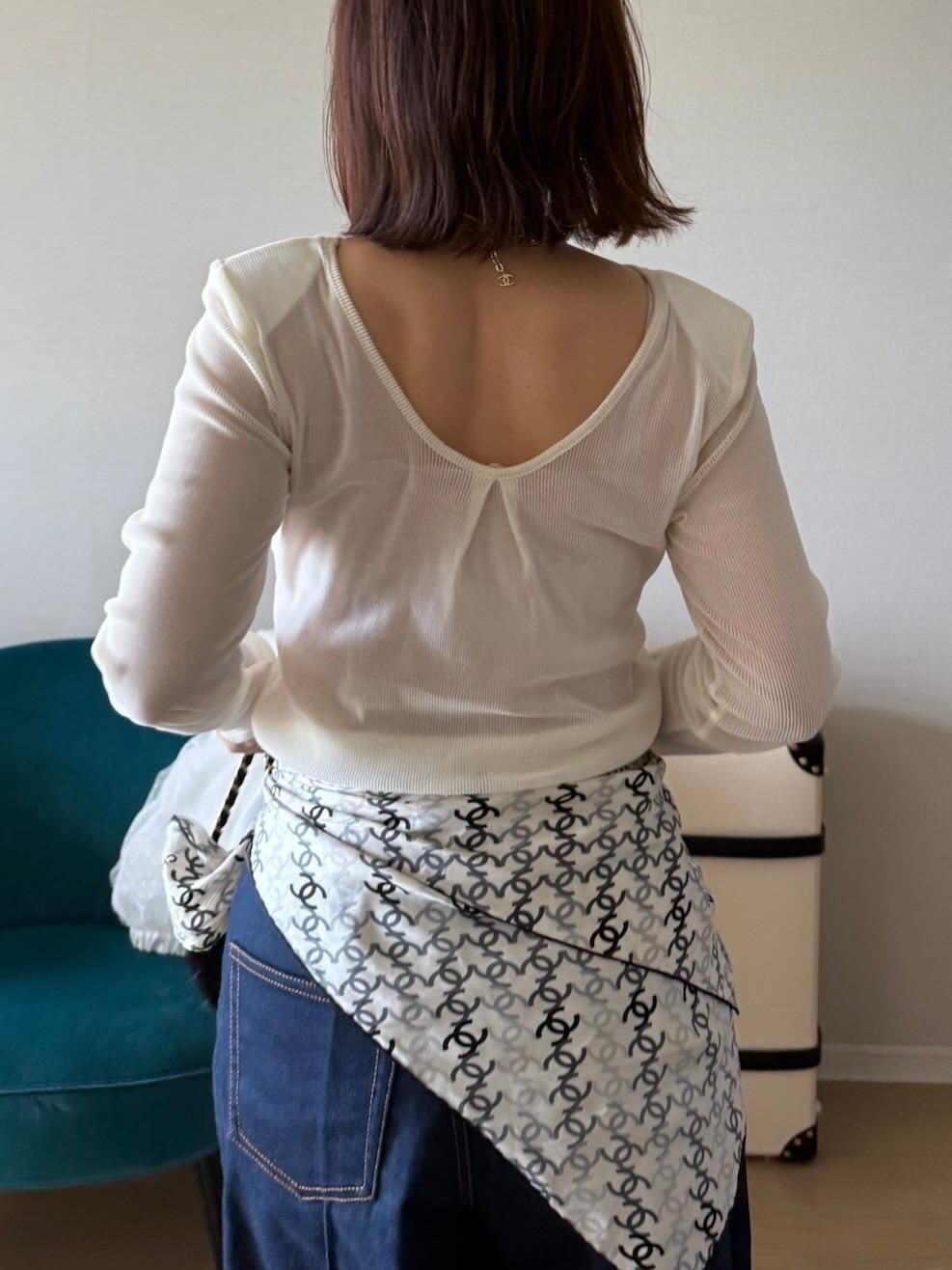 背中の少し大きめの開きが女性らしい抜け感を演出する