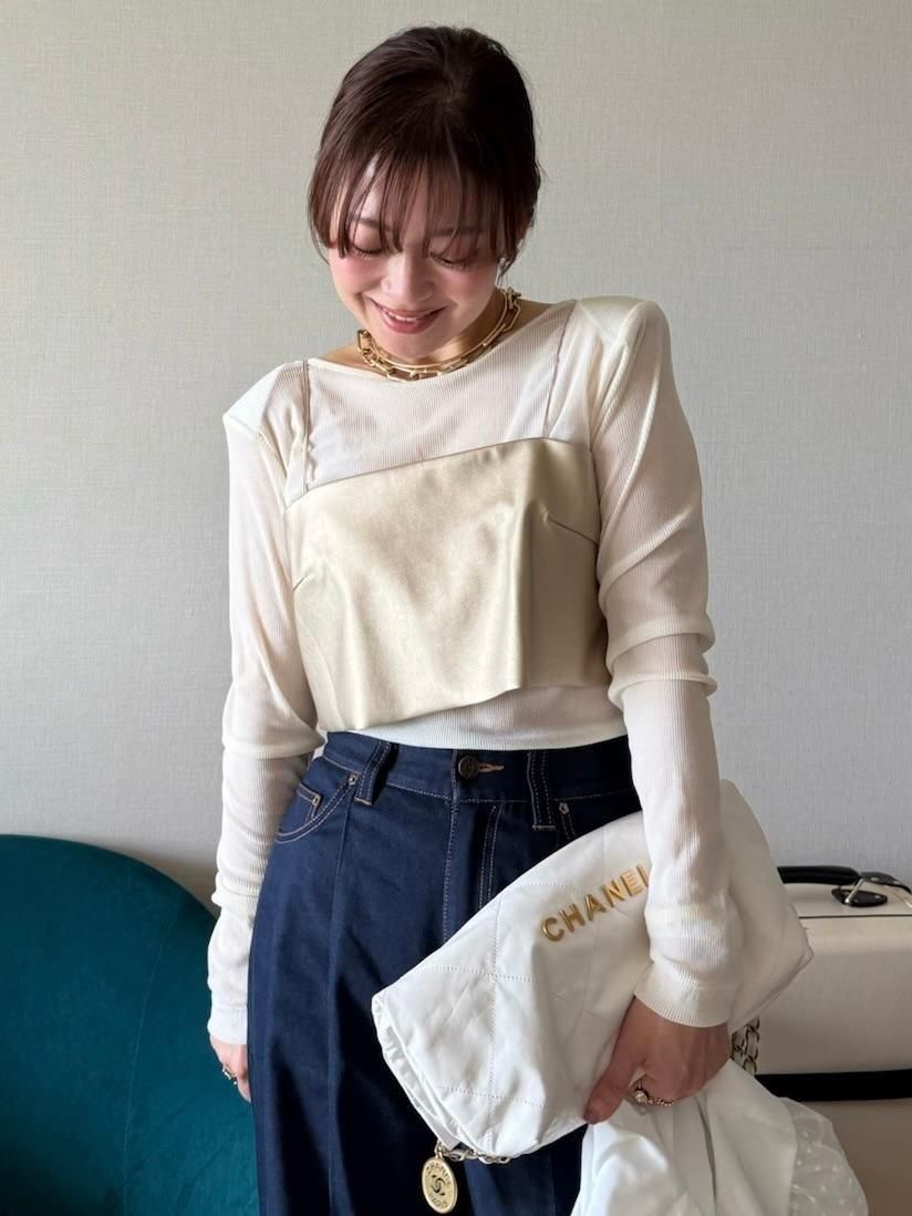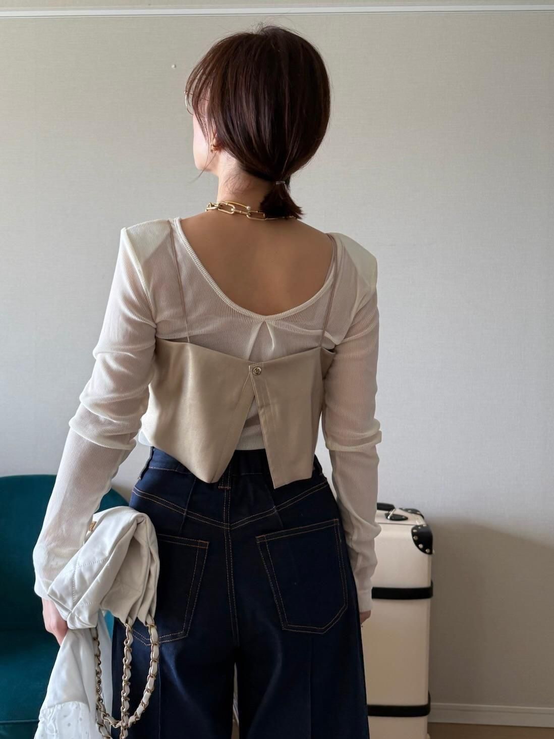 エコレザーキャミなどと合わせたレイヤードスタイルも