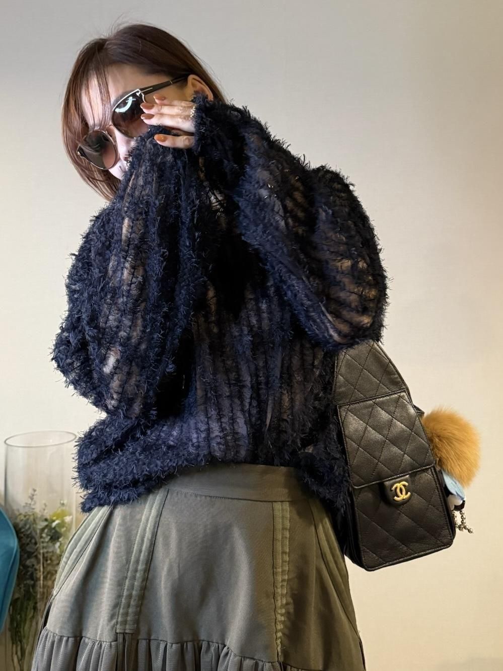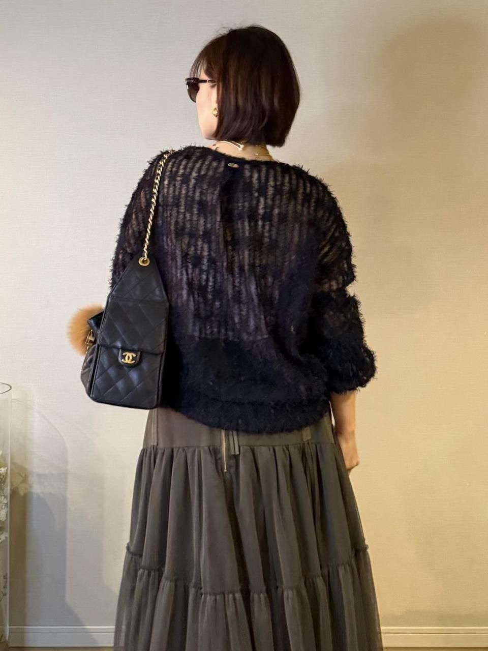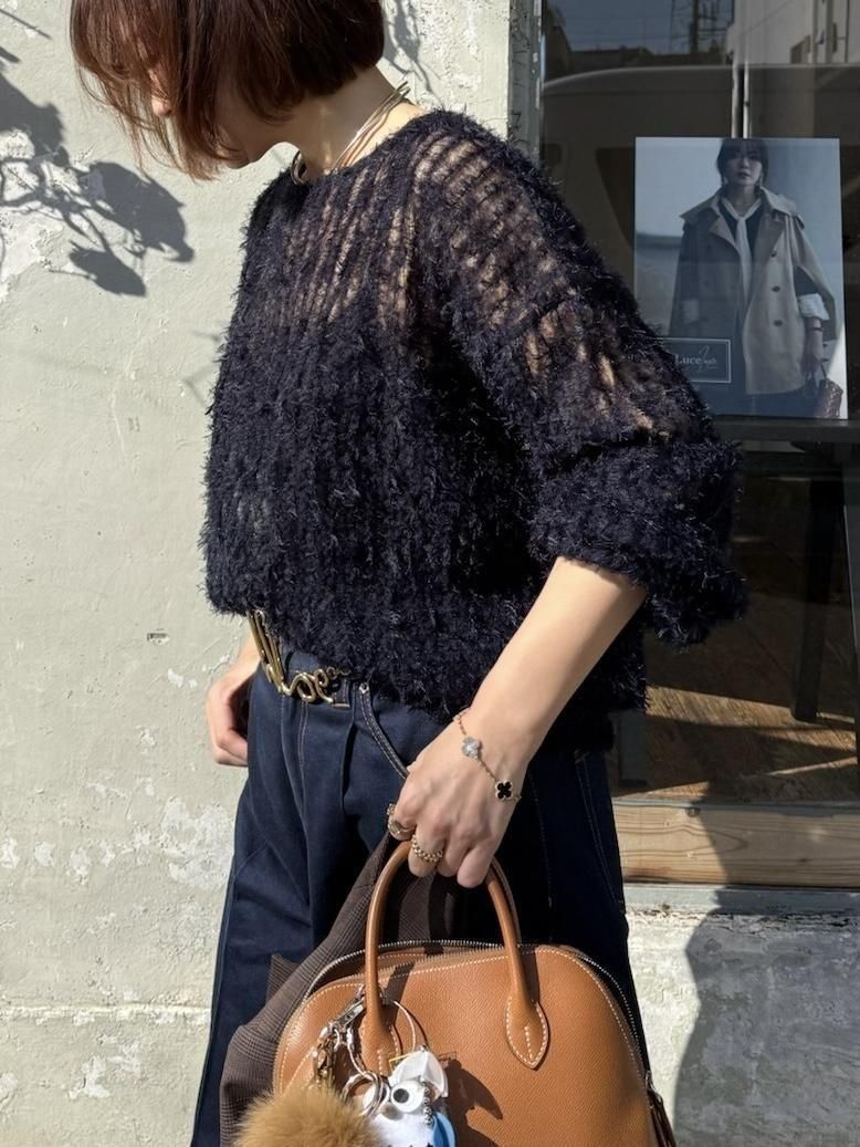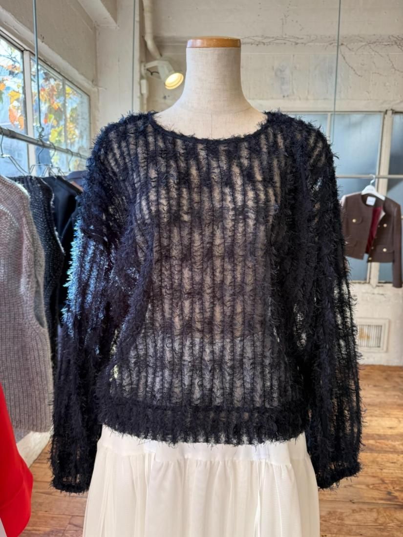 軽やかなチュールにふんわりとシャギーが映える、華やかさのあるチュールシャギープルオーバー。