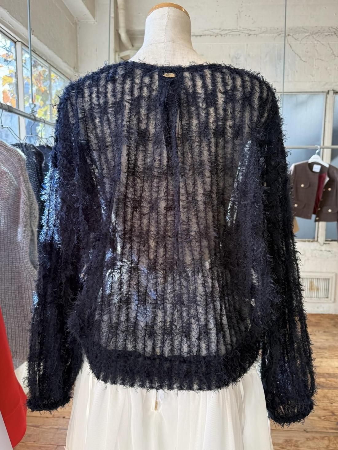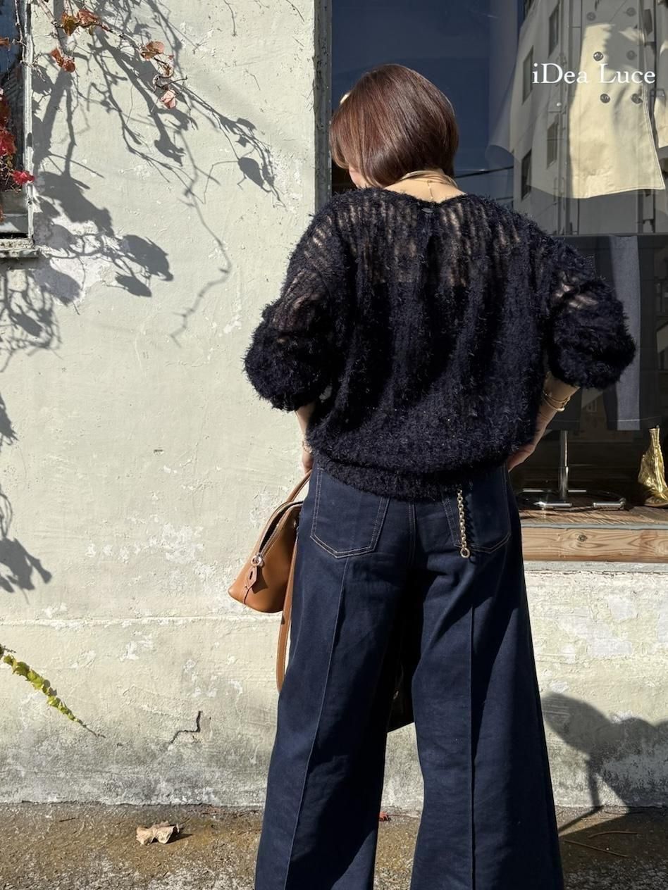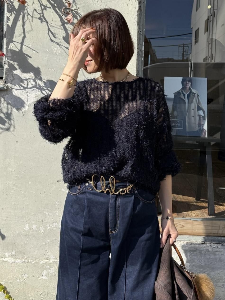 軽やかなチュールにふんわりとシャギーが映える、華やかさのあるチュールシャギープルオーバー。