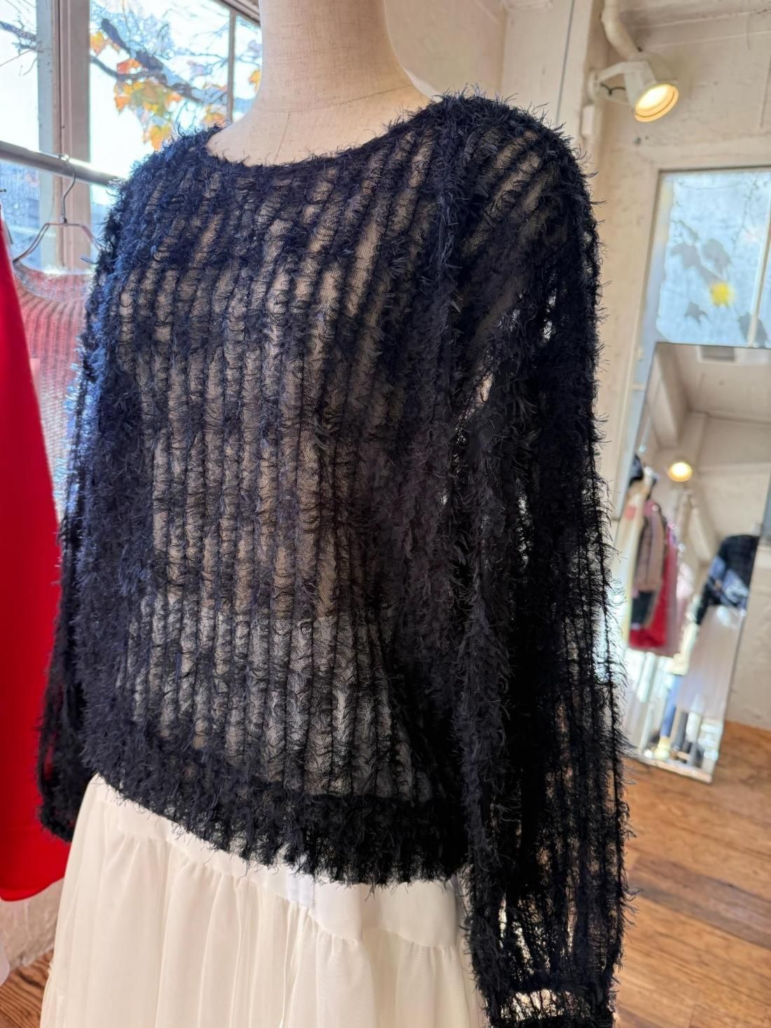 チュールベースながら、シャギーのボリュームで透け過ぎない点も嬉しいポイント。